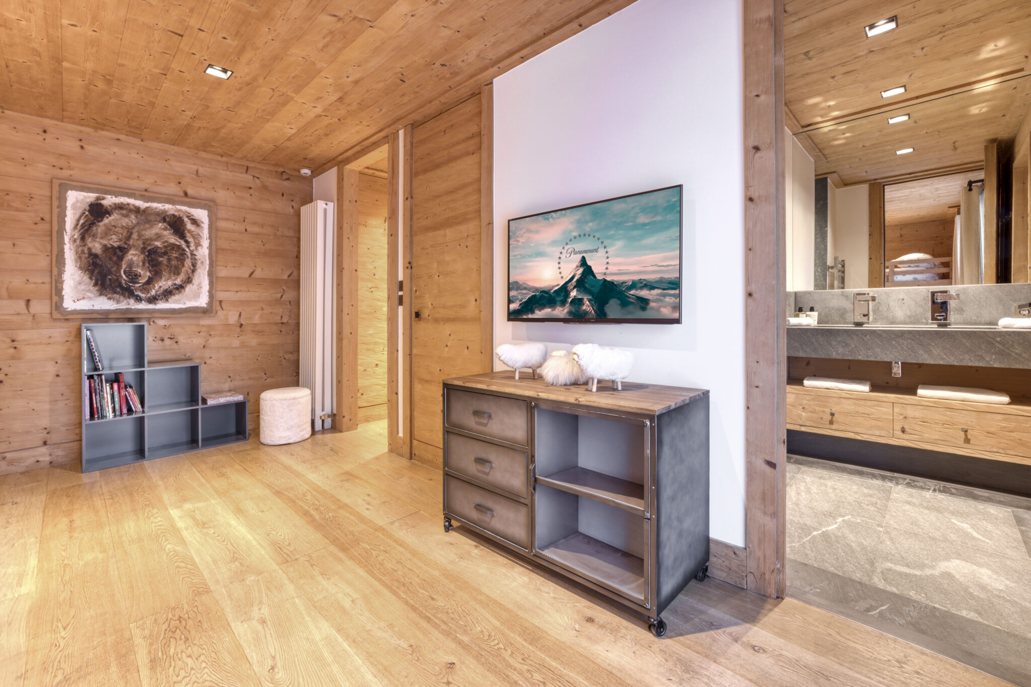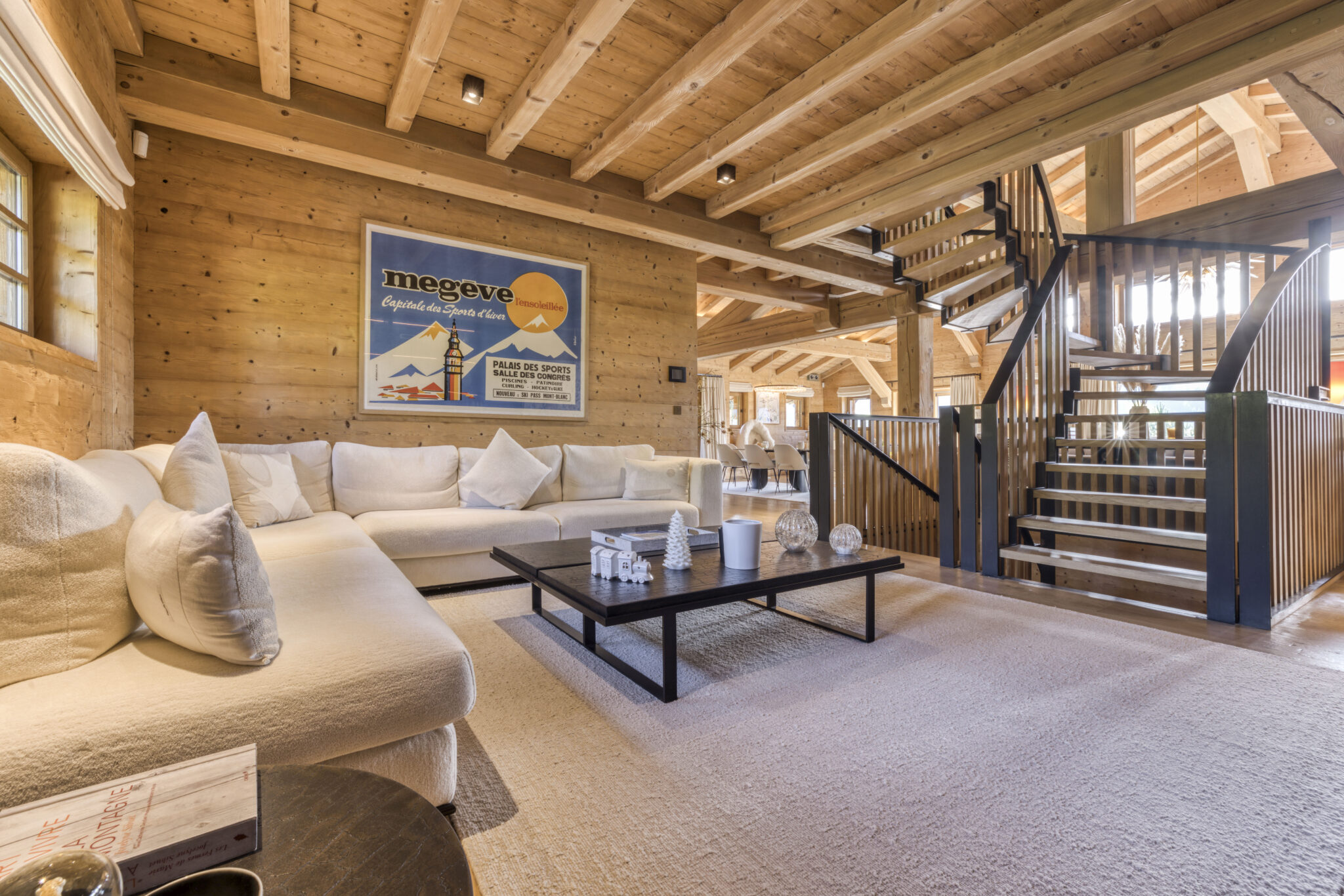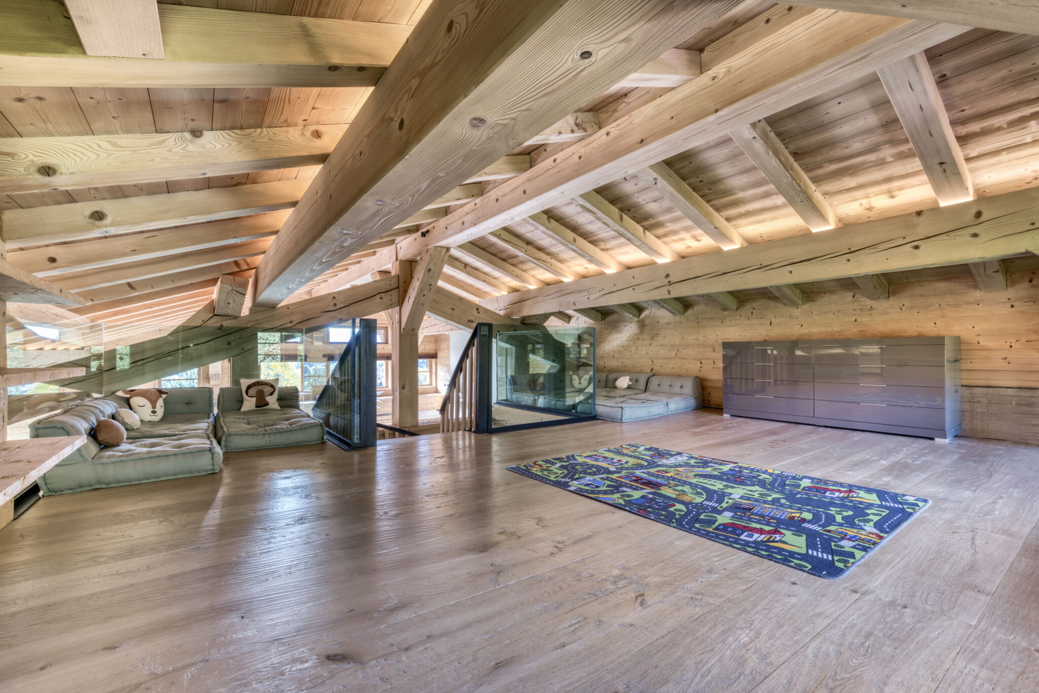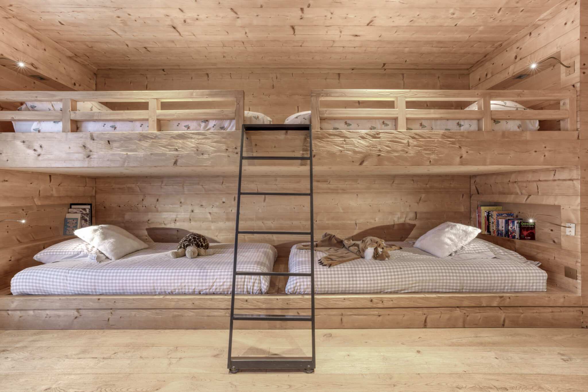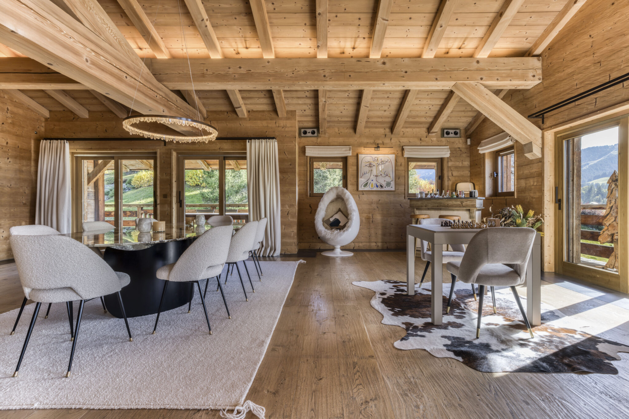 This superb chalet is ideally located in an exclusive and sought-after area of Mont d’Arbois, offering ski-in/ski-out access. Spread over four levels, it has a surface area of approximately 700m² and comprises five bedrooms, including a children’s bedroom with two bunk beds (sleeps 4). It can accommodate eight adults and four children. Facing south, the chalet enjoys plenty of sunshine throughout the day and boasts beautiful views of Mont Charvin and the Aravis mountains.