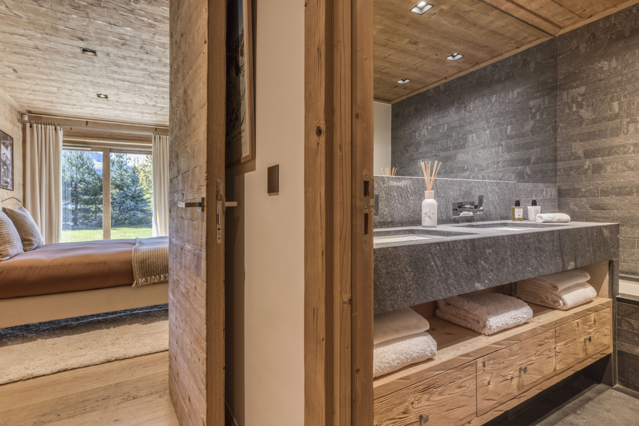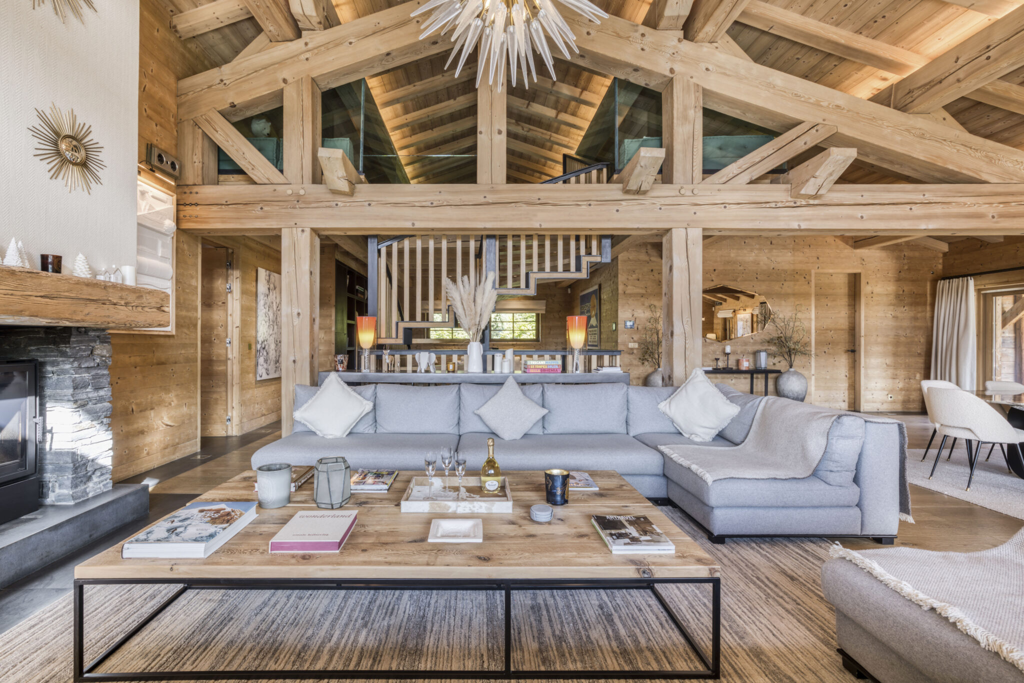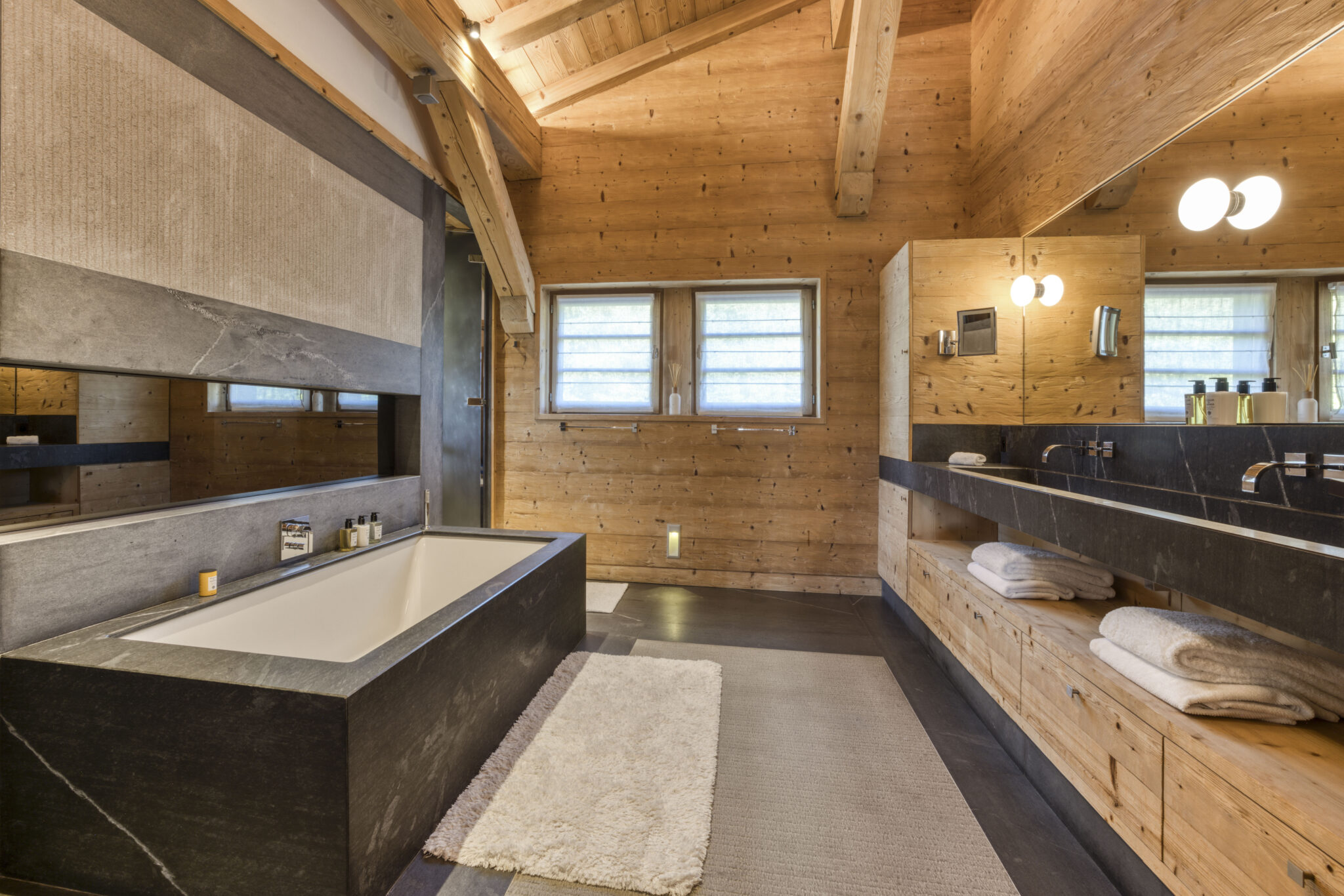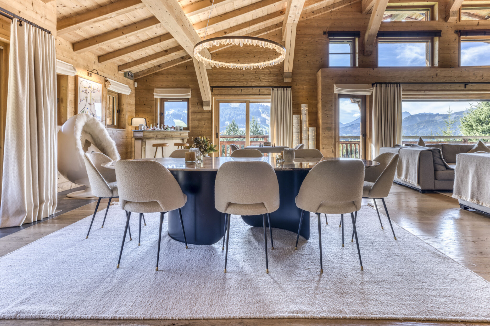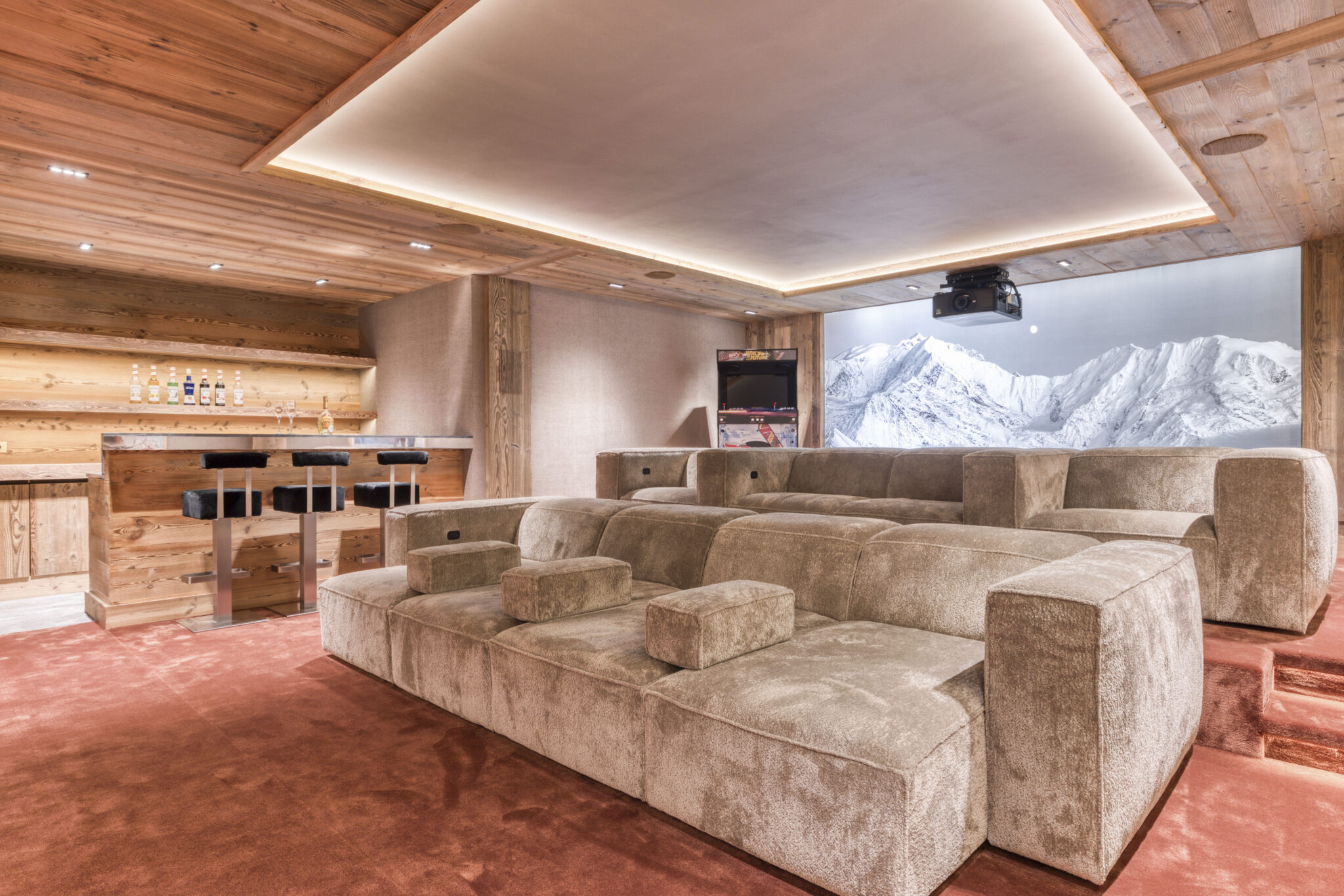 This superb chalet is ideally located in an exclusive and sought-after area of Mont d’Arbois, offering ski-in/ski-out access. Spread over four levels, it has a surface area of approximately 700m² and comprises five bedrooms, including a children’s bedroom with two bunk beds (sleeps 4). It can accommodate eight adults and four children. Facing south, the chalet enjoys plenty of sunshine throughout the day and boasts beautiful views of Mont Charvin and the Aravis mountains.