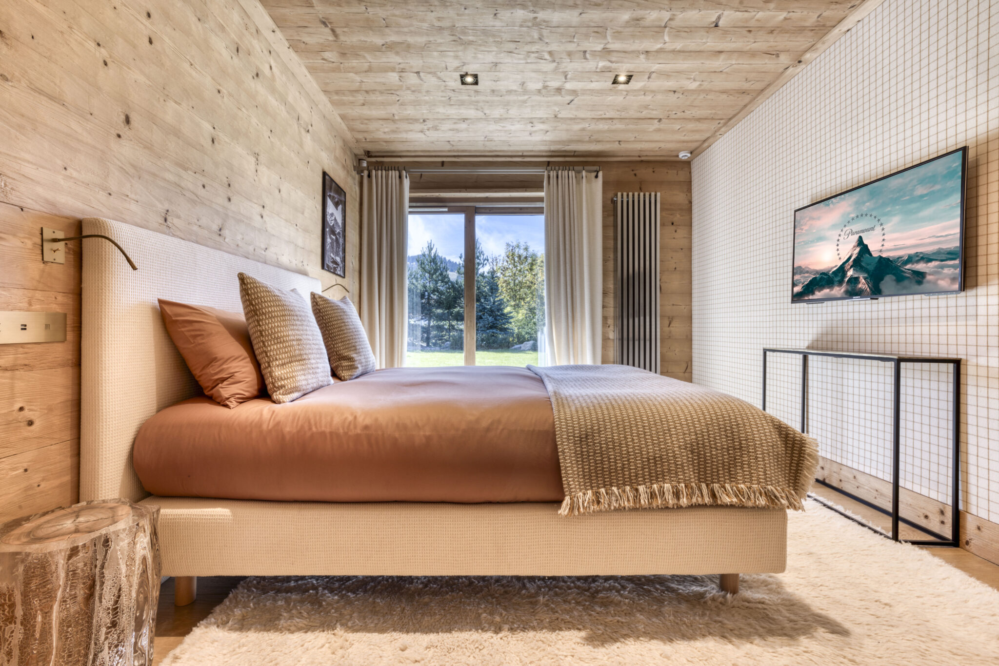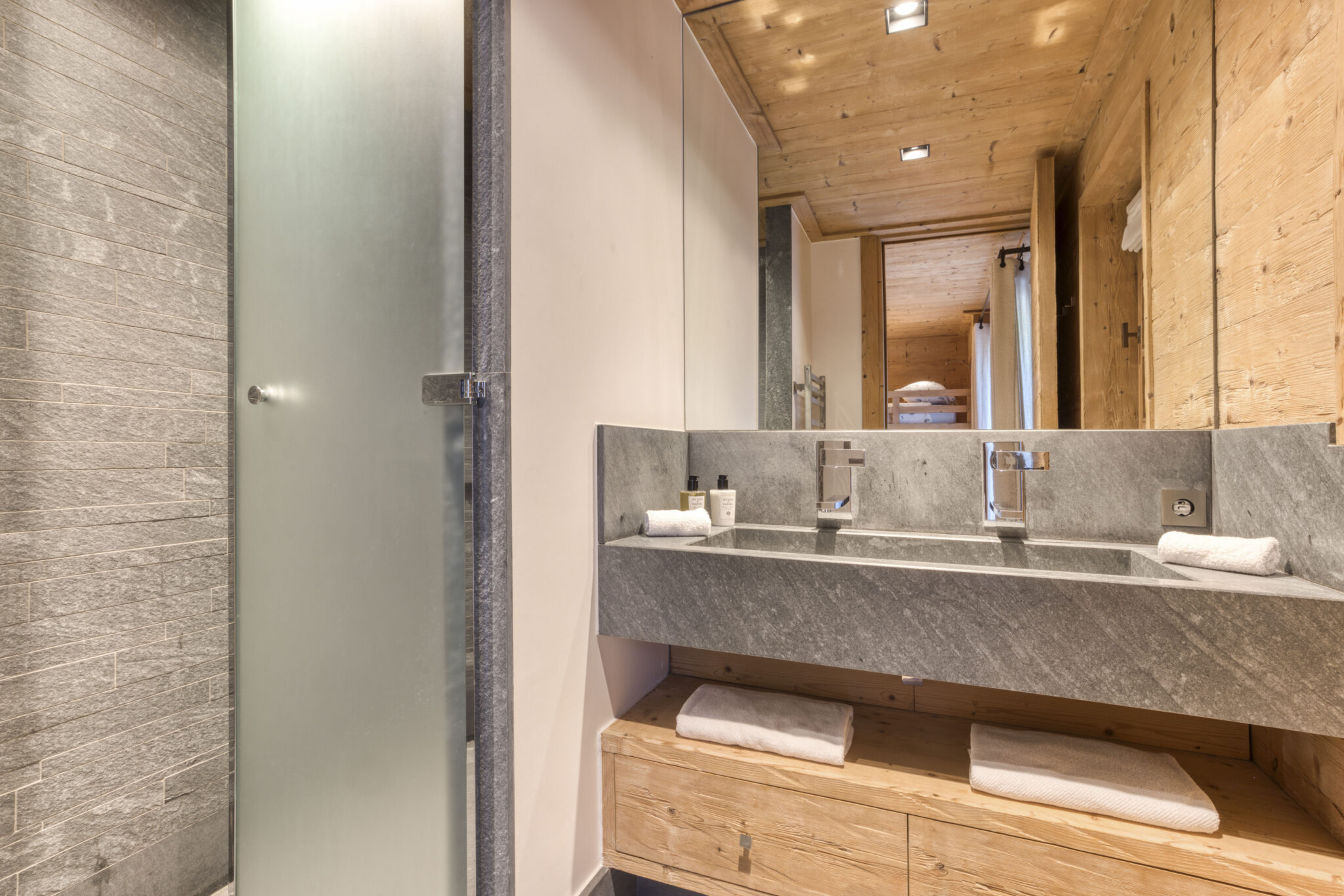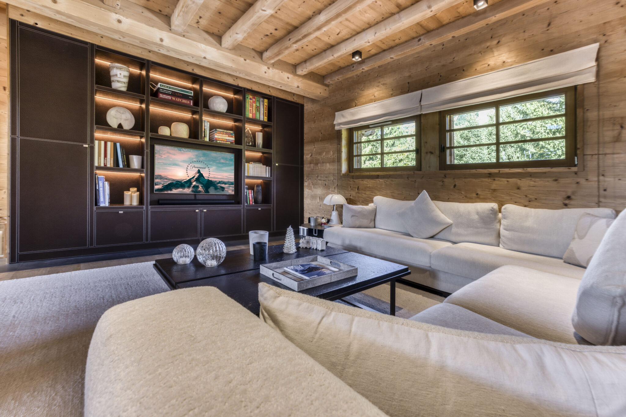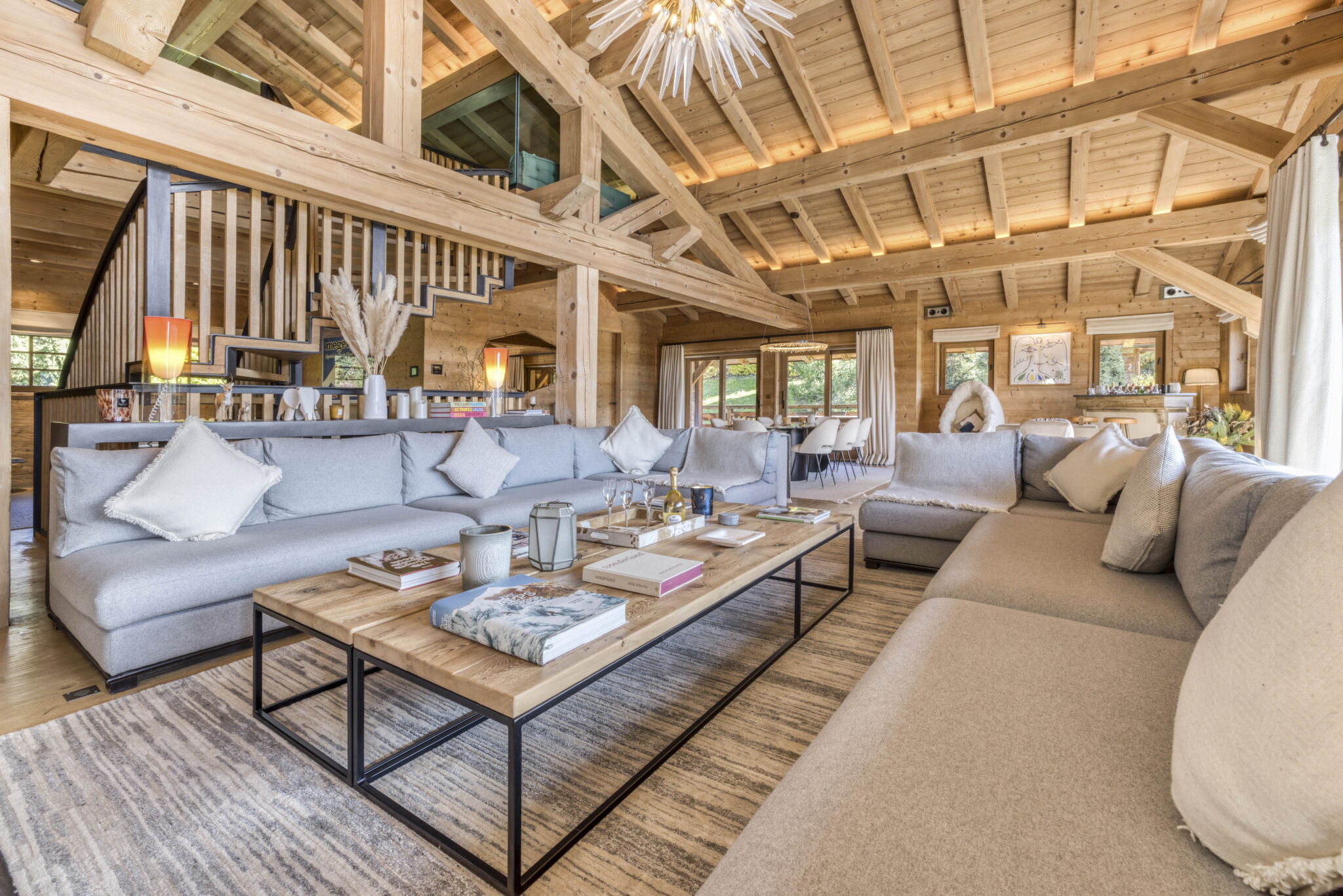 This superb chalet is ideally located in an exclusive and sought-after area of Mont d’Arbois, offering ski-in/ski-out access. Spread over four levels, it has a surface area of approximately 700m² and comprises five bedrooms, including a children’s bedroom with two bunk beds (sleeps 4). It can accommodate eight adults and four children. Facing south, the chalet enjoys plenty of sunshine throughout the day and boasts beautiful views of Mont Charvin and the Aravis mountains.