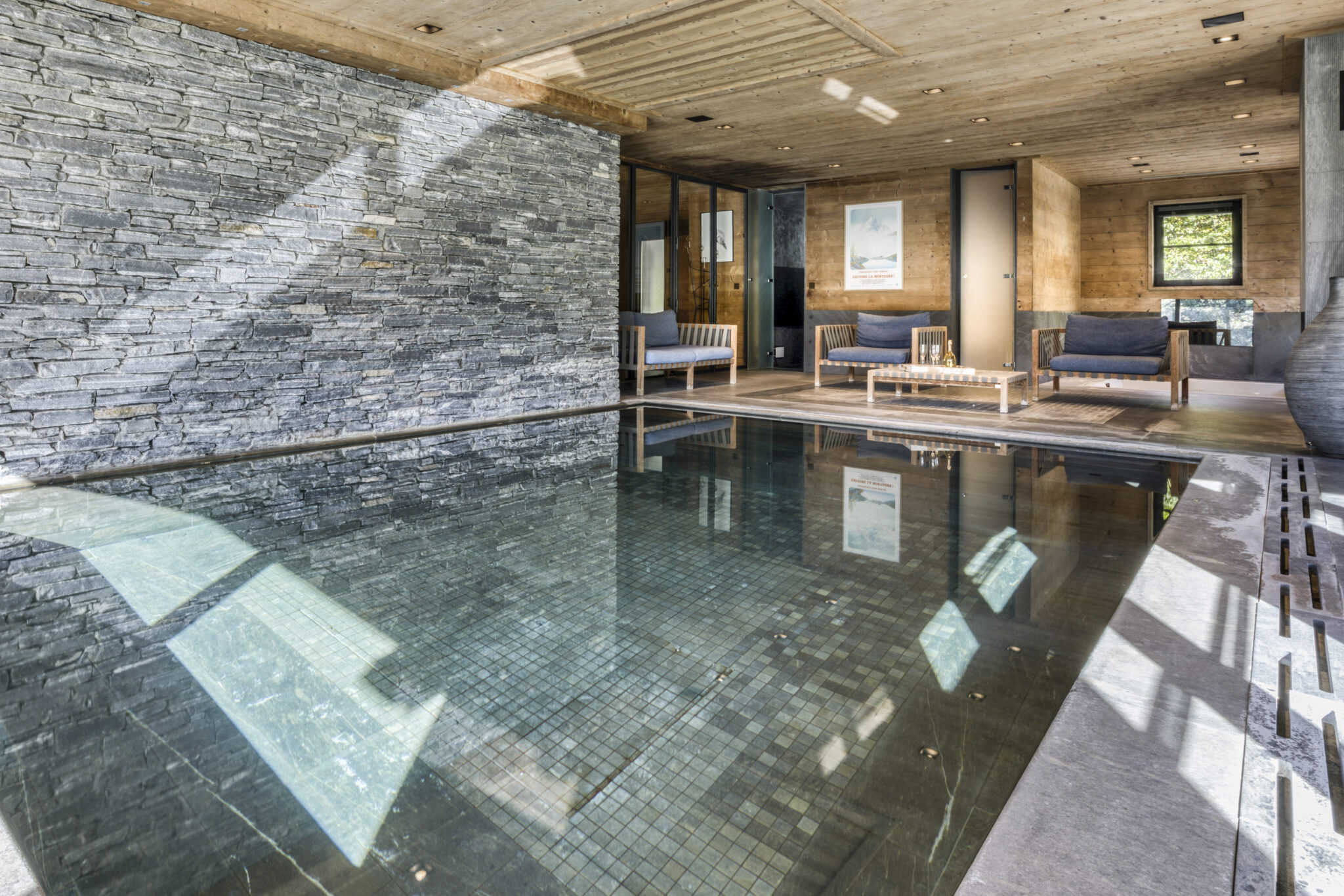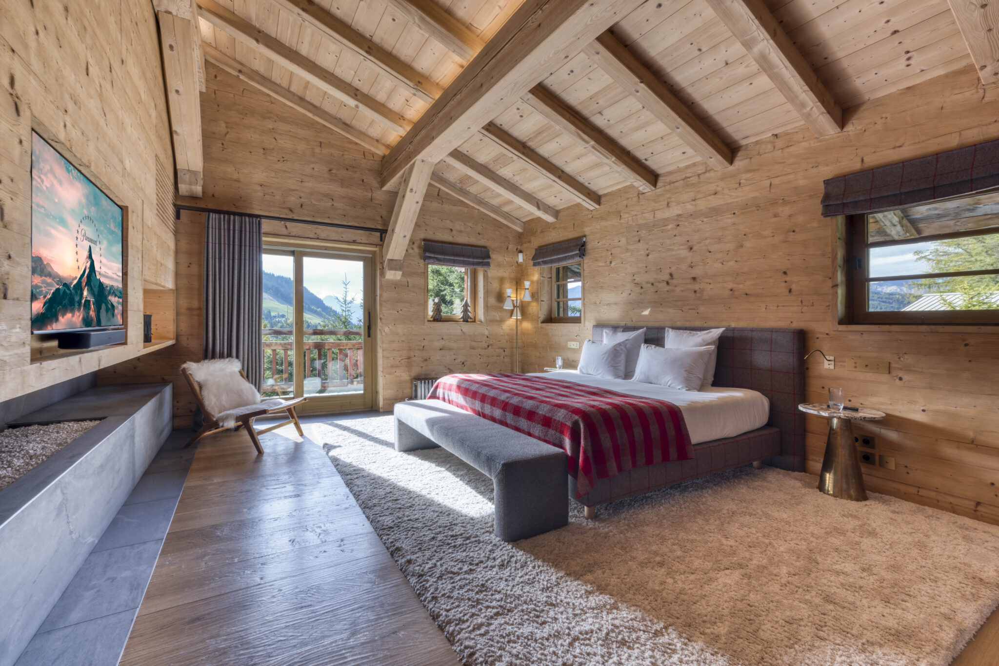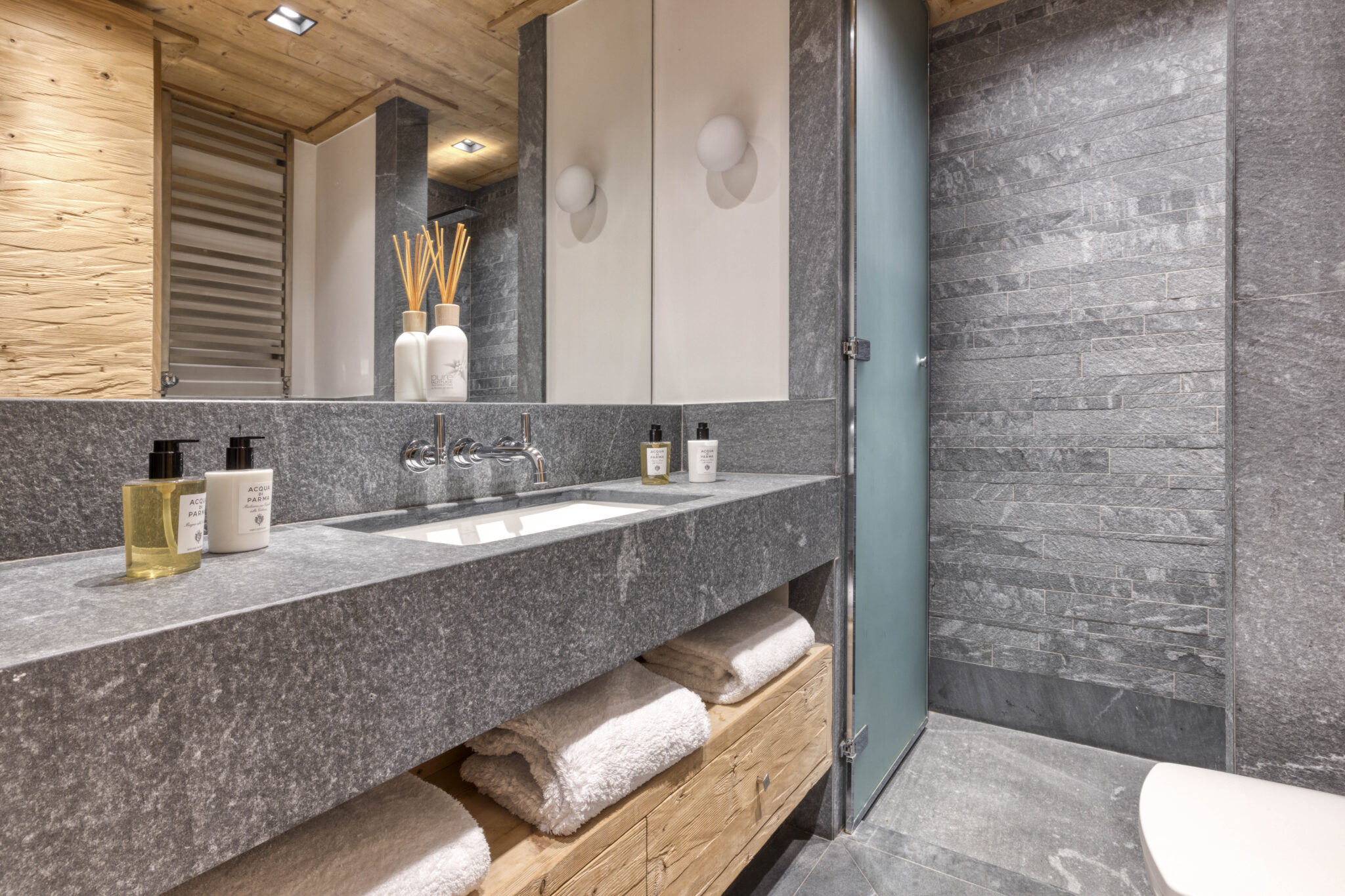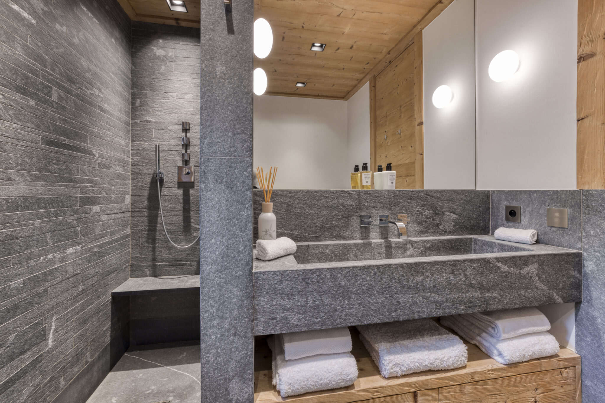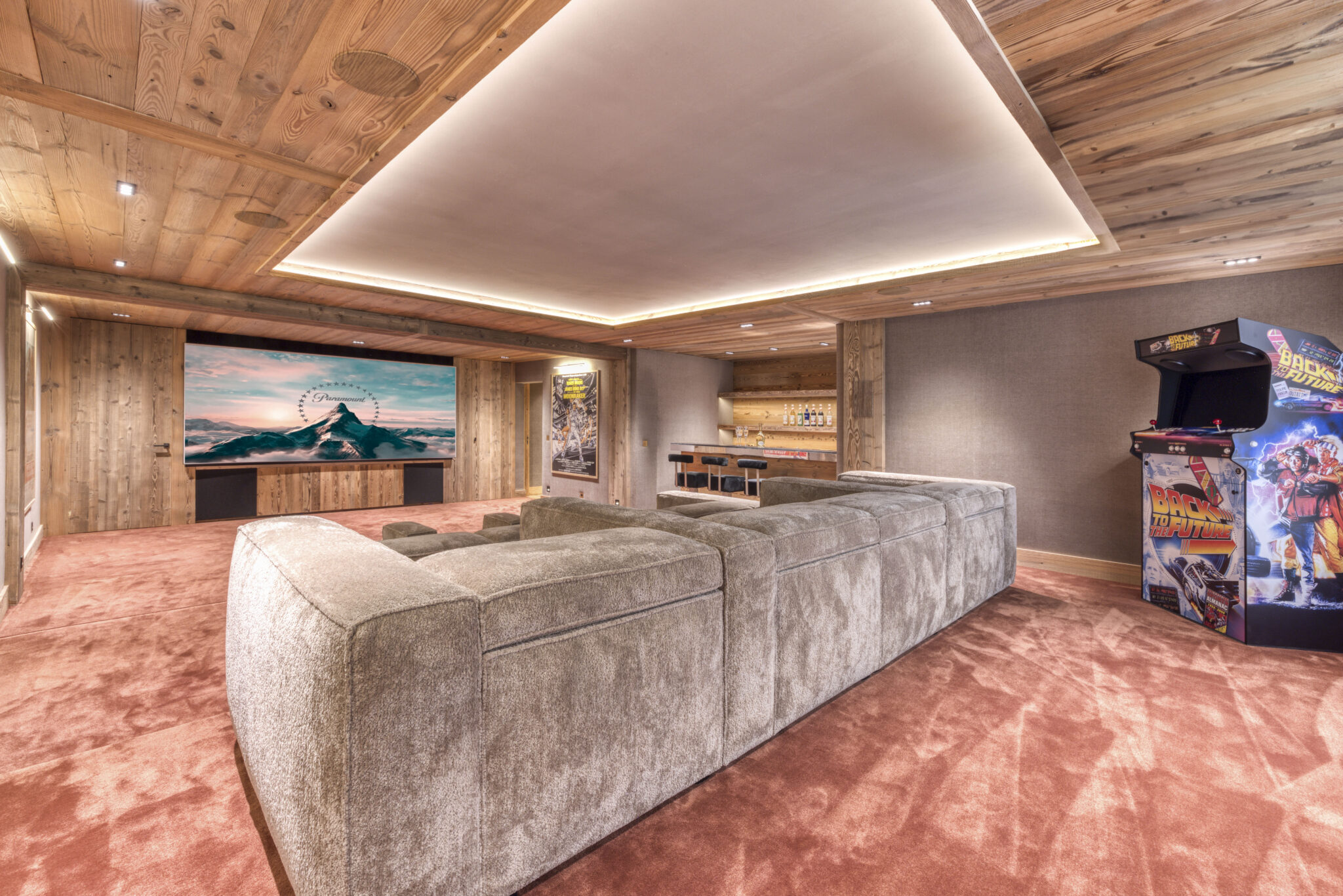 This superb chalet is ideally located in an exclusive and sought-after area of Mont d’Arbois, offering ski-in/ski-out access. Spread over four levels, it has a surface area of approximately 700m² and comprises five bedrooms, including a children’s bedroom with two bunk beds (sleeps 4). It can accommodate eight adults and four children. Facing south, the chalet enjoys plenty of sunshine throughout the day and boasts beautiful views of Mont Charvin and the Aravis mountains.