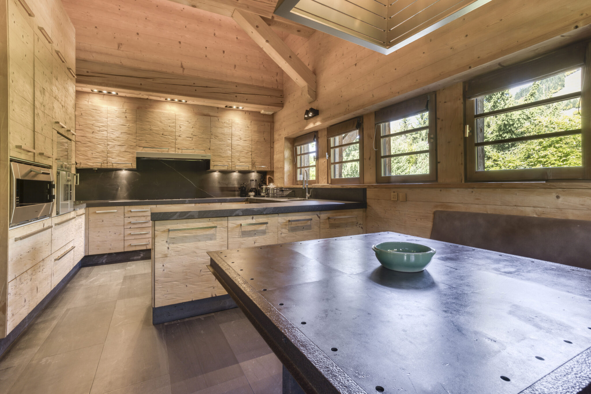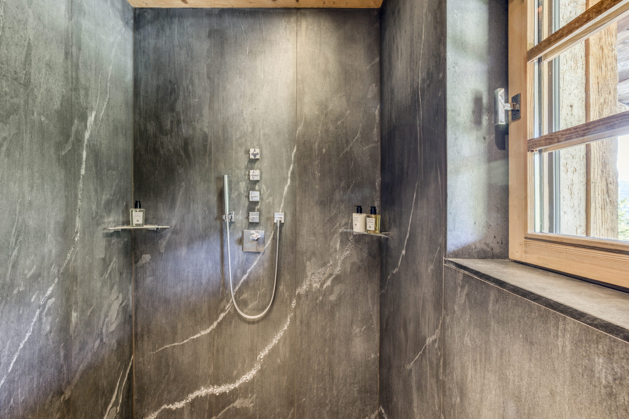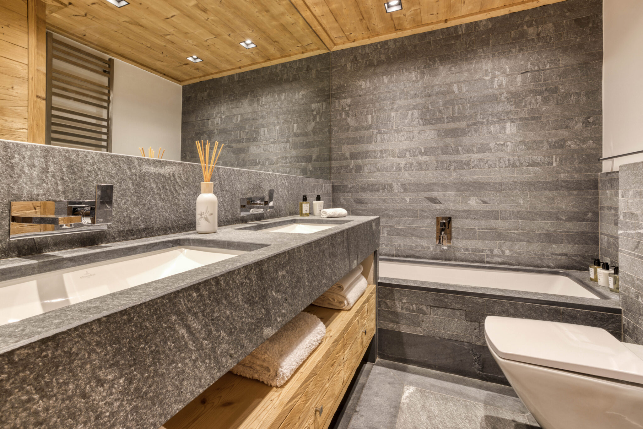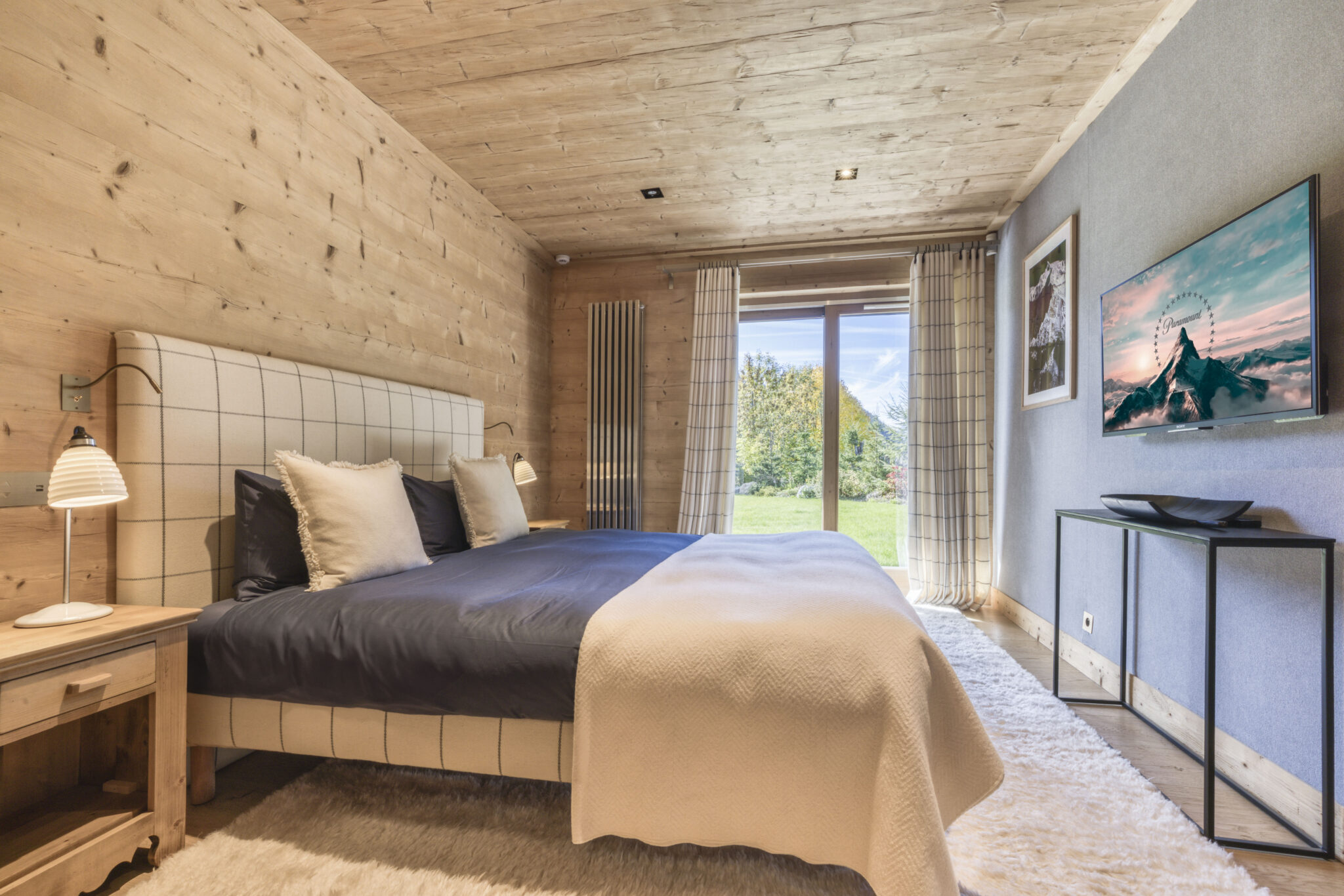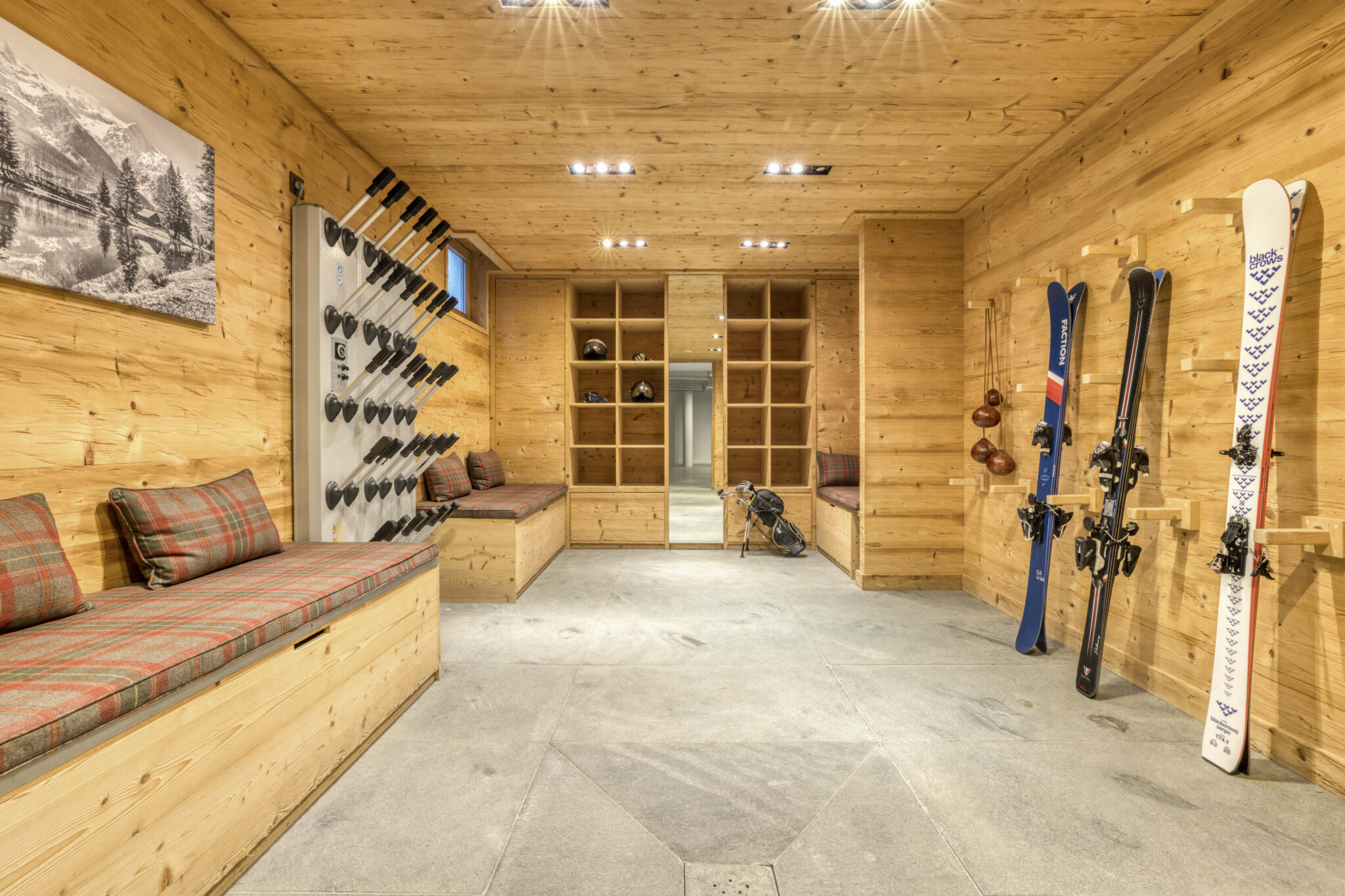 This superb chalet is ideally located in an exclusive and sought-after area of Mont d’Arbois, offering ski-in/ski-out access. Spread over four levels, it has a surface area of approximately 700m² and comprises five bedrooms, including a children’s bedroom with two bunk beds (sleeps 4). It can accommodate eight adults and four children. Facing south, the chalet enjoys plenty of sunshine throughout the day and boasts beautiful views of Mont Charvin and the Aravis mountains.