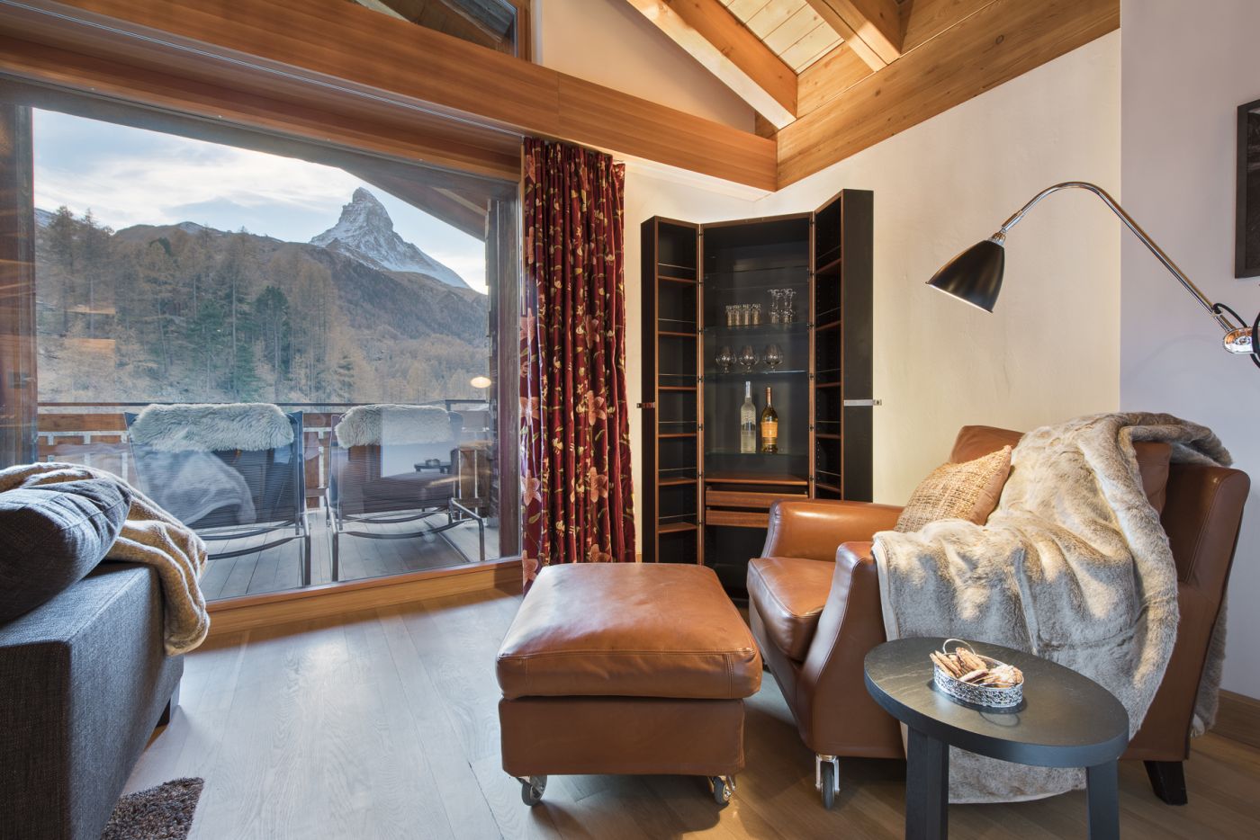 You enter the apartment on the first floor which is the main sleeping floor. On this floor there are six twin/double bedrooms all with en-suite bathrooms and balconies. The two master bedrooms have uninterrupted views of the iconic Matterhorn. Bright and spacious, all of the furnishings are of the highest quality and all the bathrooms have separate baths and power showers.
