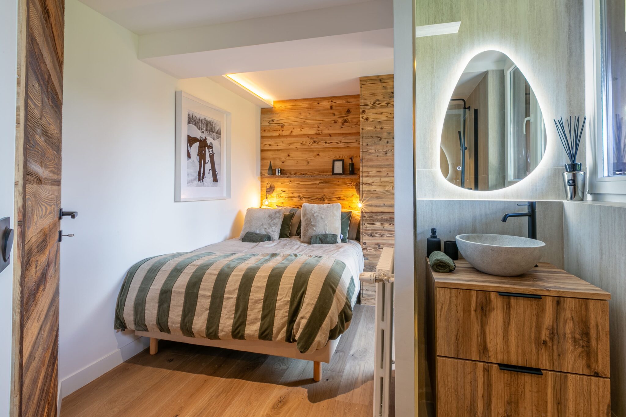 Entièrement rénové et d’une surface de 61 m2, il comprend 2 chambres, 2 salle de douche avec WC séparés et un bel espace de vie ouvert et lumineux avec salon, salle à manger et cuisine donnant sur un grand balcon et une vue dégagée sur le Mont-Charvin et les Aravis. Avec une exposition sud-ouest, il bénéficie d’un bon ensoleillement.