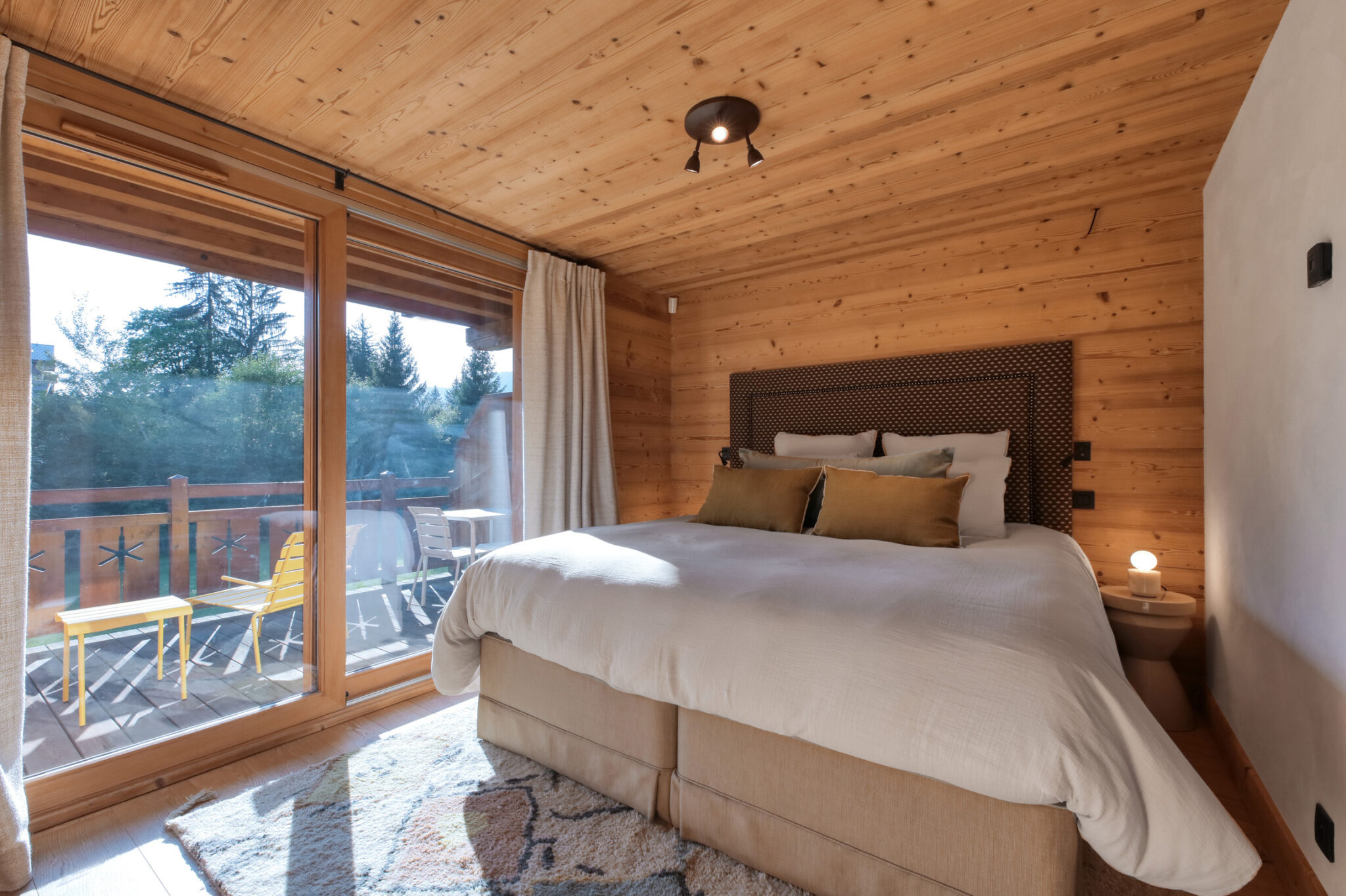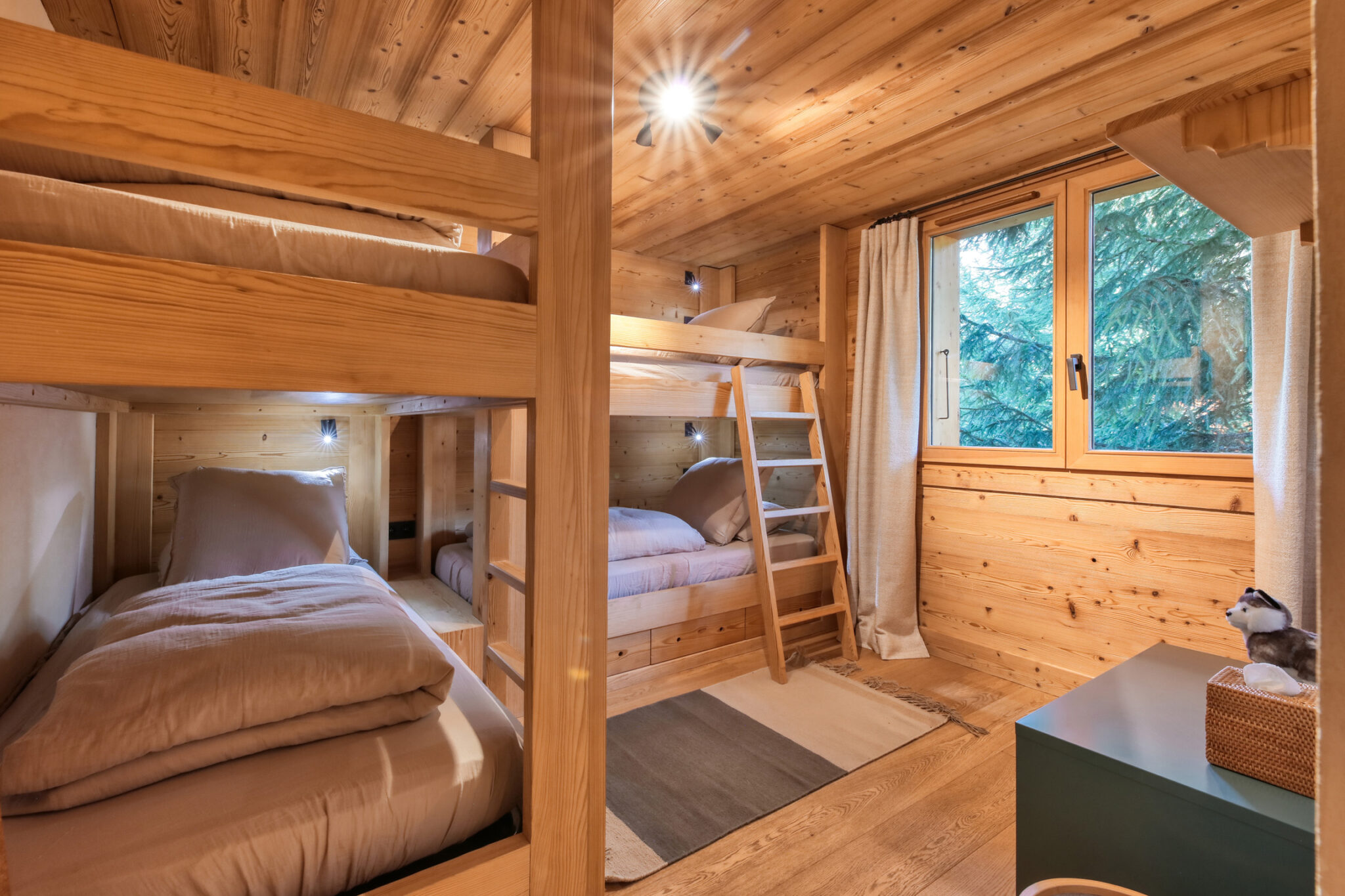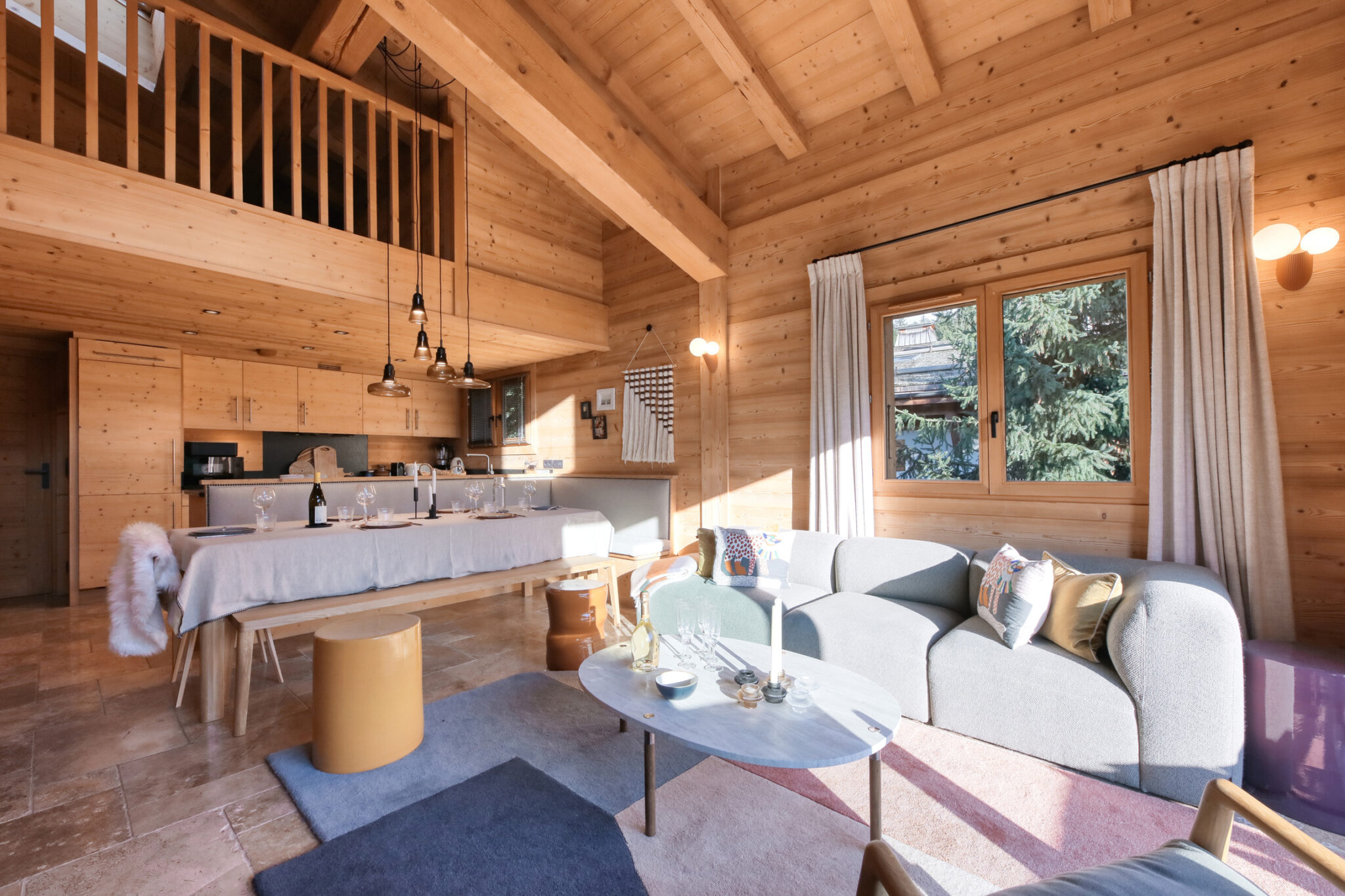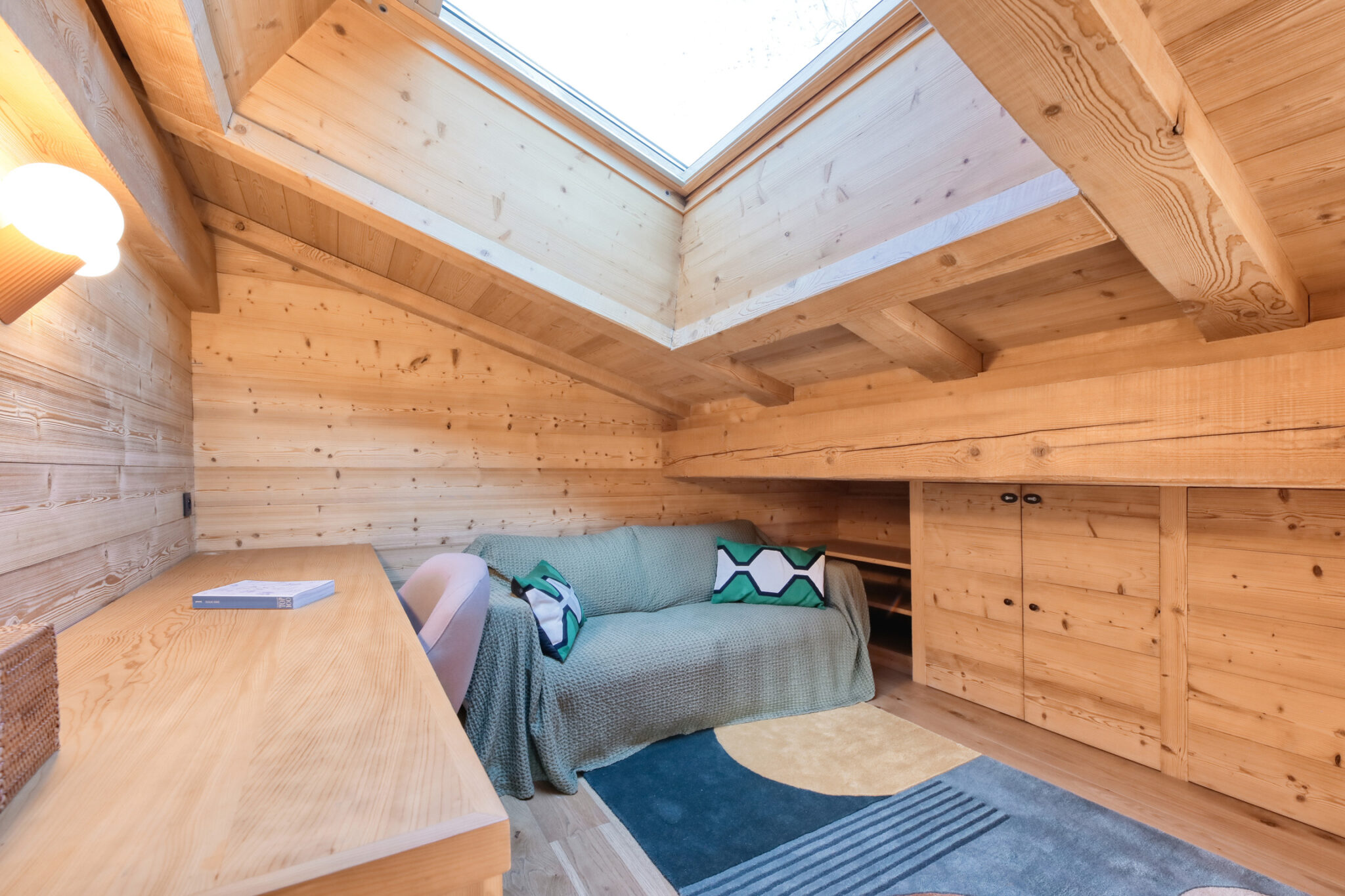 D’une surface de 100 m2, il est composé de deux chambres doubles avec TV, d’une chambre d’enfants à 4 lits superposés et d’un espace de vie ouvert, sous charpente, comprenant un salon avec TV, cheminée et balcon, une cuisine équipée, un coin repas et une mezzanine avec petit bureau.