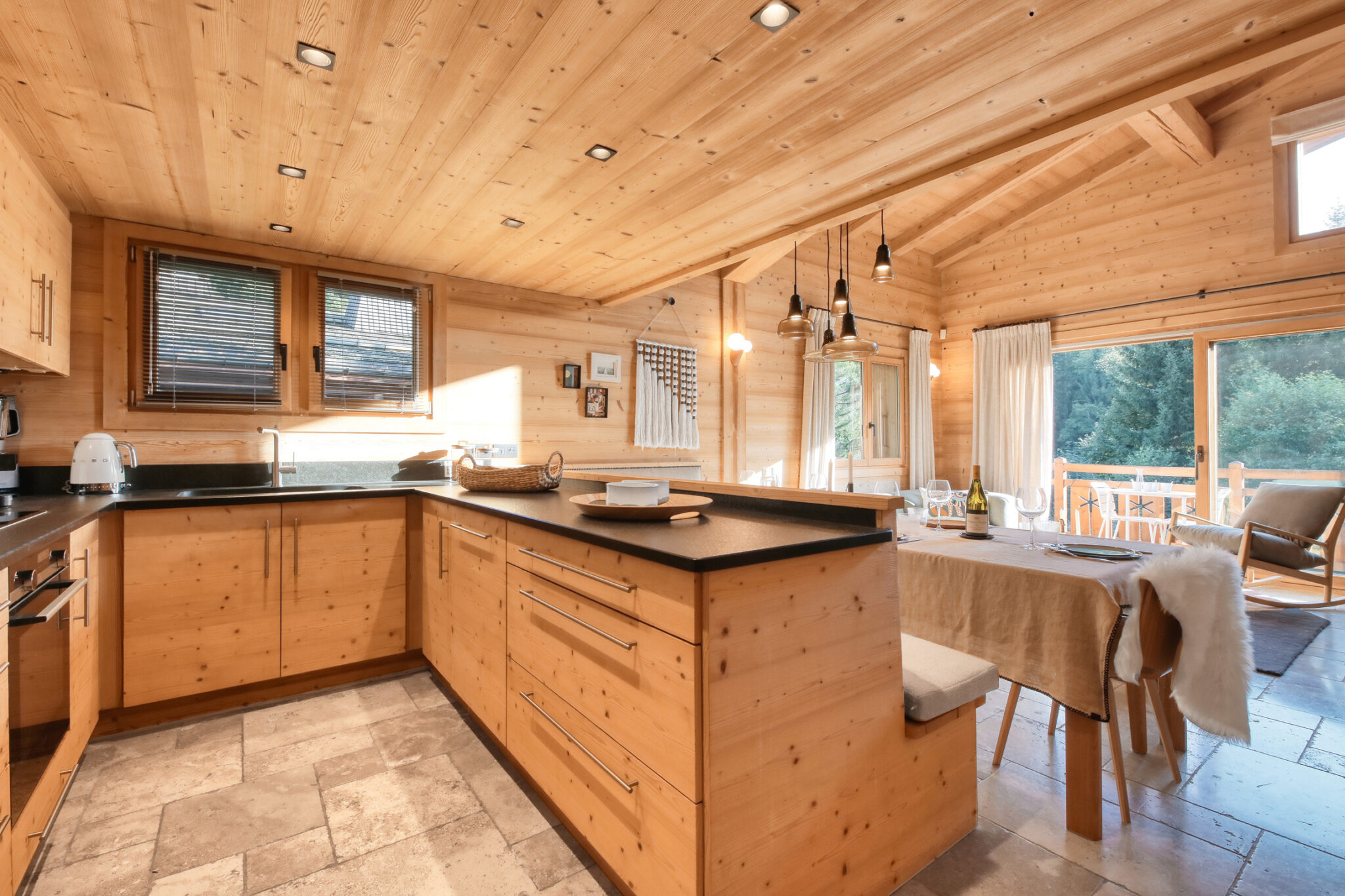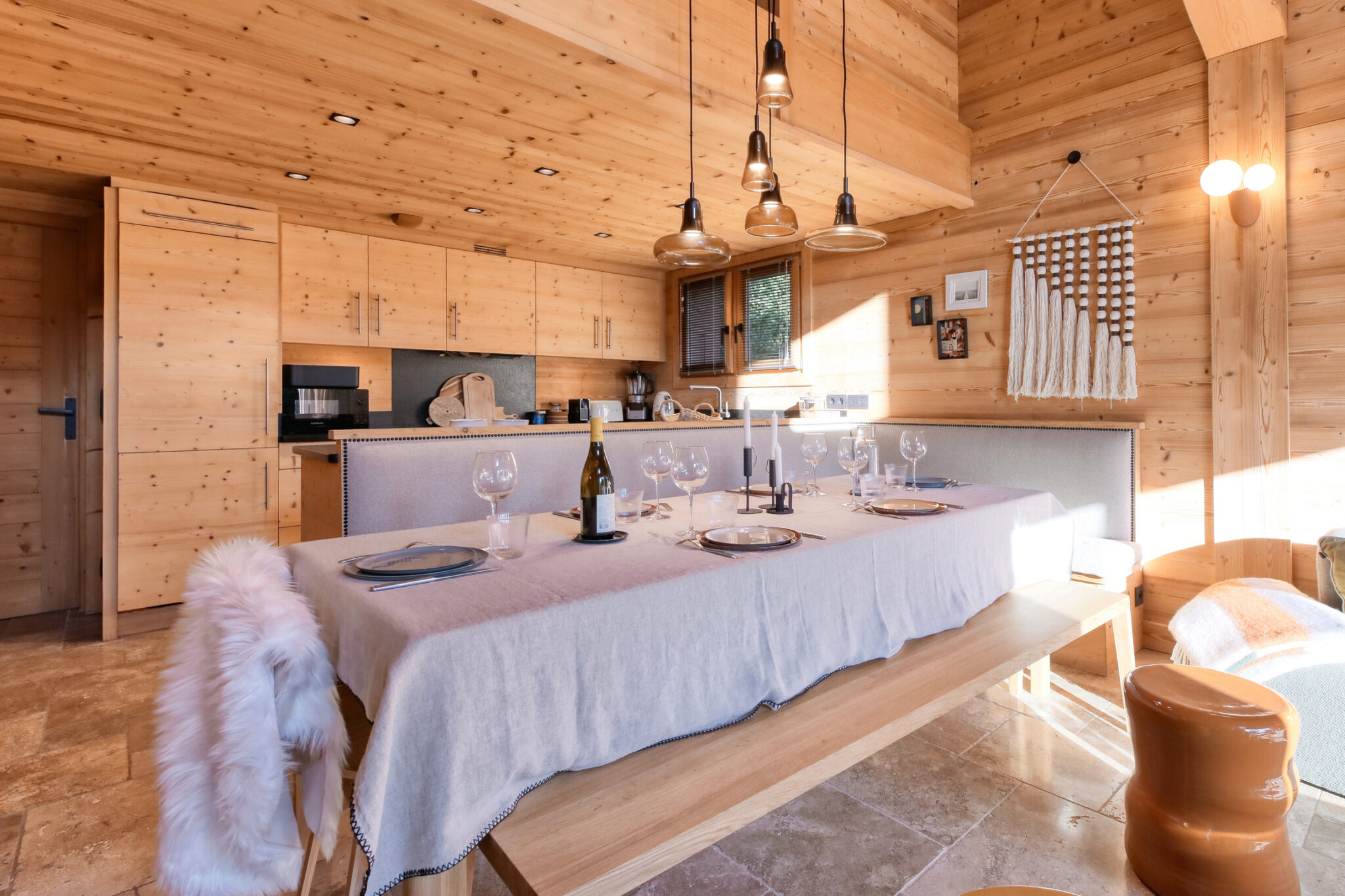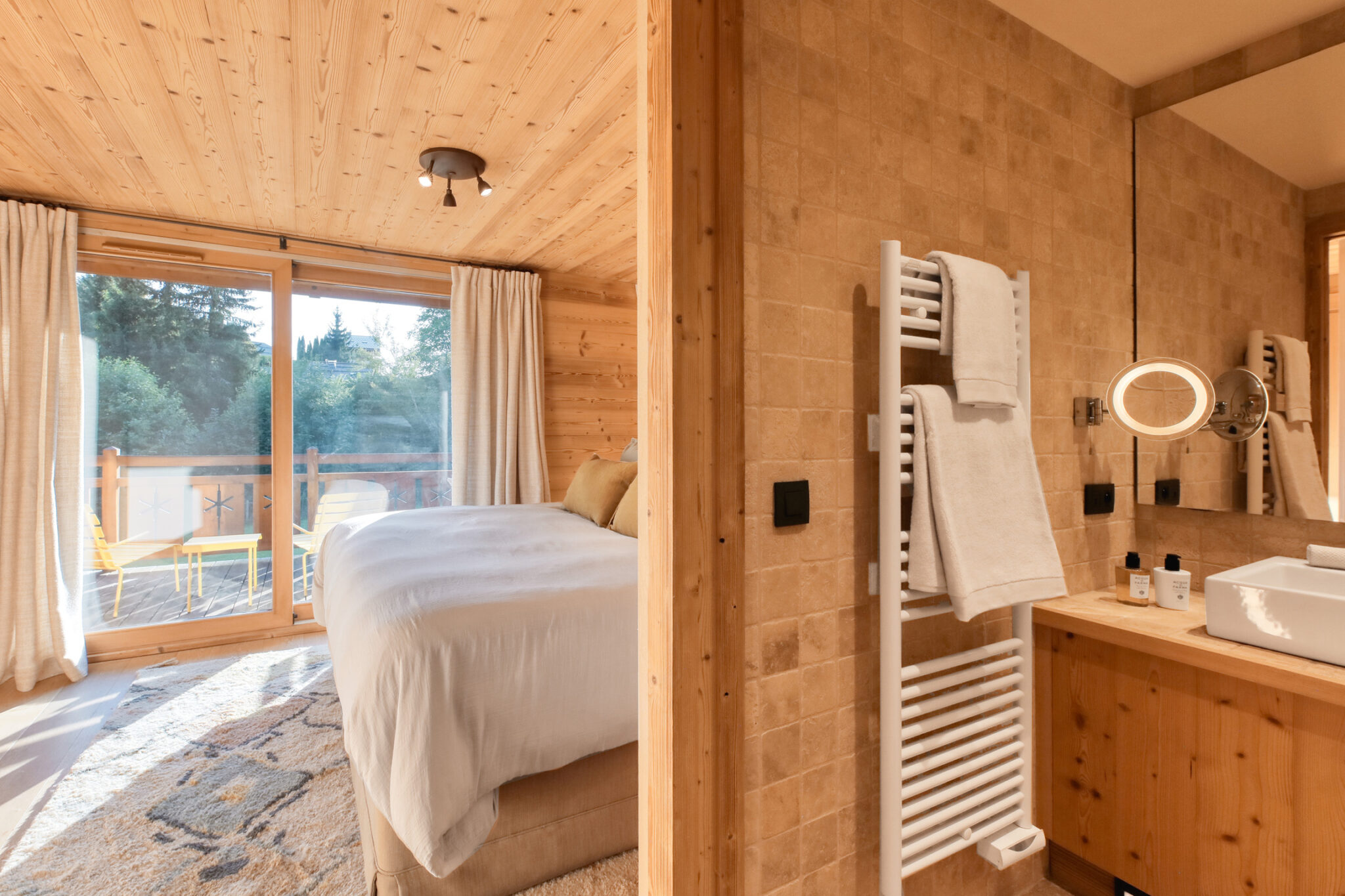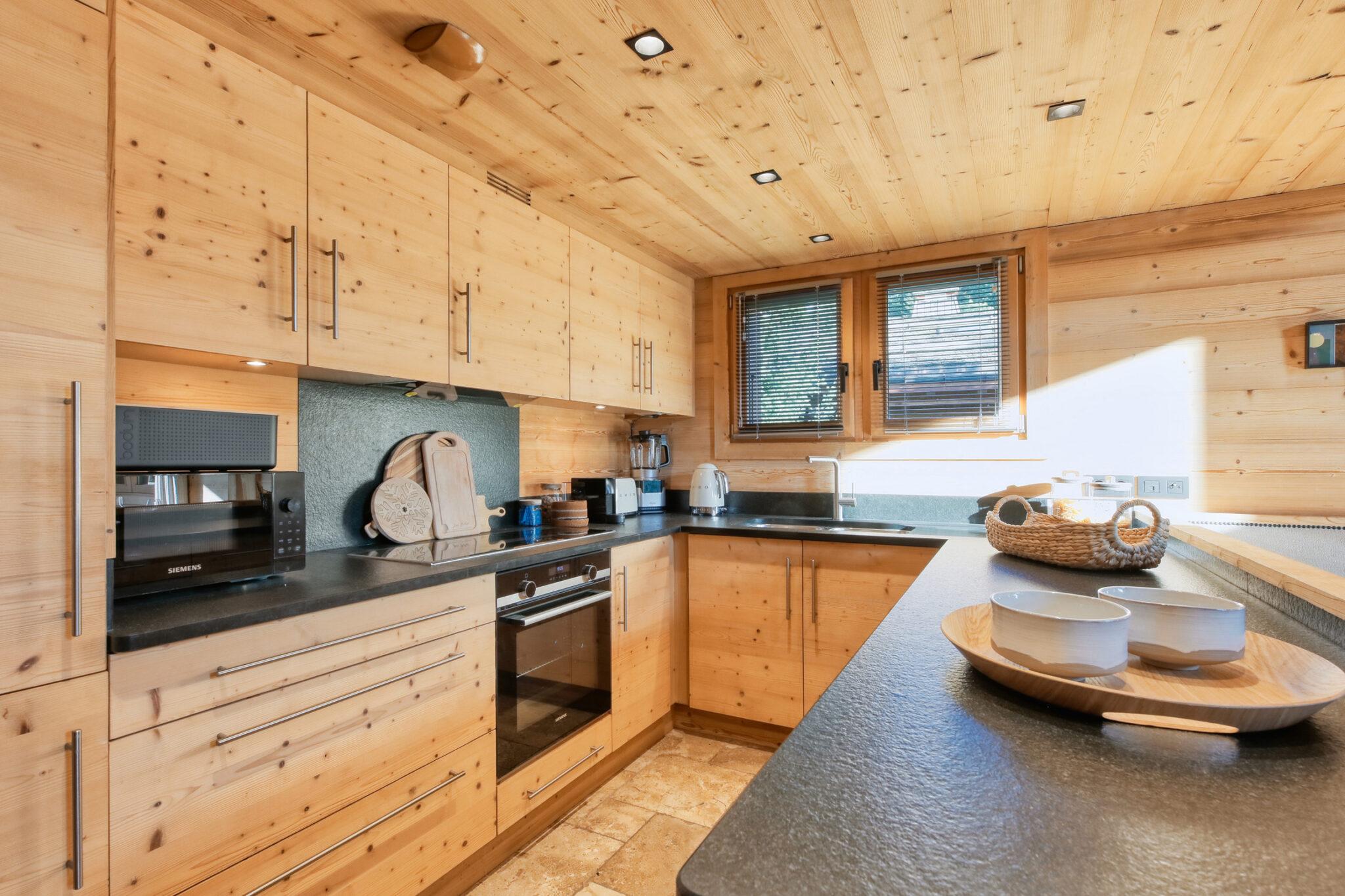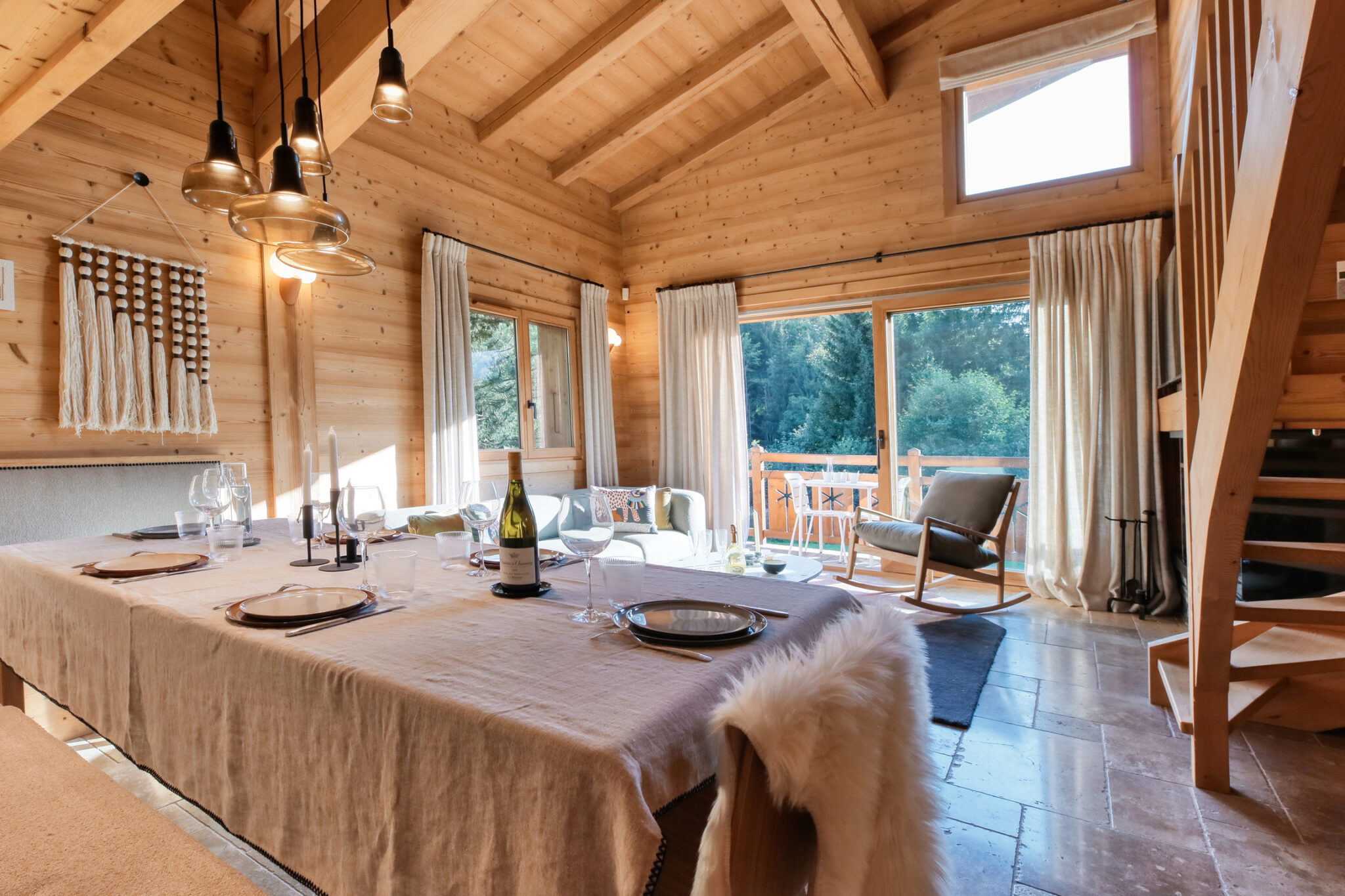 D’une surface de 100 m2, il est composé de deux chambres doubles avec TV, d’une chambre d’enfants à 4 lits superposés et d’un espace de vie ouvert, sous charpente, comprenant un salon avec TV, cheminée et balcon, une cuisine équipée, un coin repas et une mezzanine avec petit bureau.