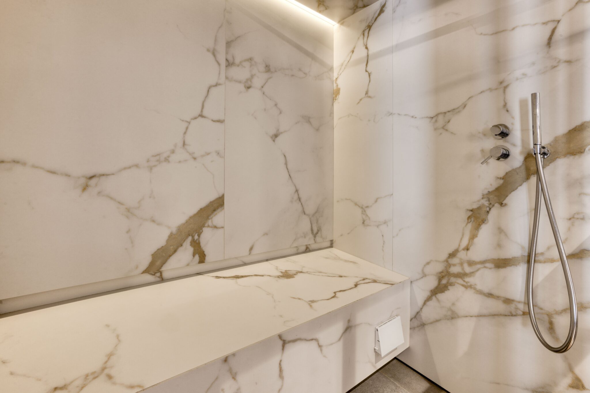Une attention particulière a été apportée à la cuisine et le bar en marbre auxquels s’ajoutent une grande cave à vin et la salle à manger avec cheminée, le tout formant un ensemble très convivial. Le salon se trouve, quant à lui, à l’étage supérieur pour profiter de plus grandes ouvertures et de luminosité. Ses nombreux canapés, fauteuils et tapis constituent une véritable atmosphère cocooning et cerise sur le gâteau, vous pourrez y passer des soirées cinéma mémorables grâce à son projecteur et écran déroulant, par ailleurs, complètement invisible lorsqu’il est rétracté.